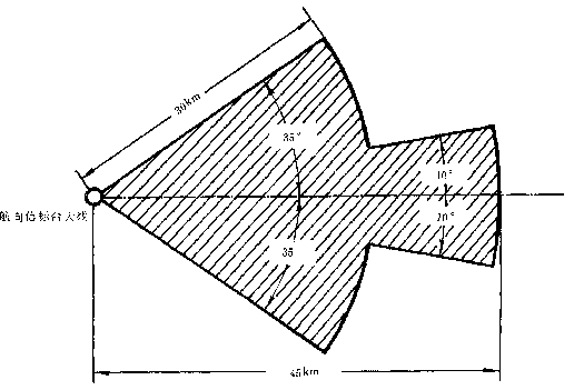 图1 航向信标台覆盖区 4.1.4 航向信标台覆盖区内,最低信号场强为40μV/m(32dB)。